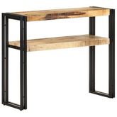 La table console en bois se veut un accroche-regard intemporel dans votre piece. Elle est ideale pour placer des livres, des magazines et d'autres articles avec de longues etageres a deux couches. Ce buffet est en bois de manguier brut, un bois dur aux grains denses. Il est combine avec du fer, ce q