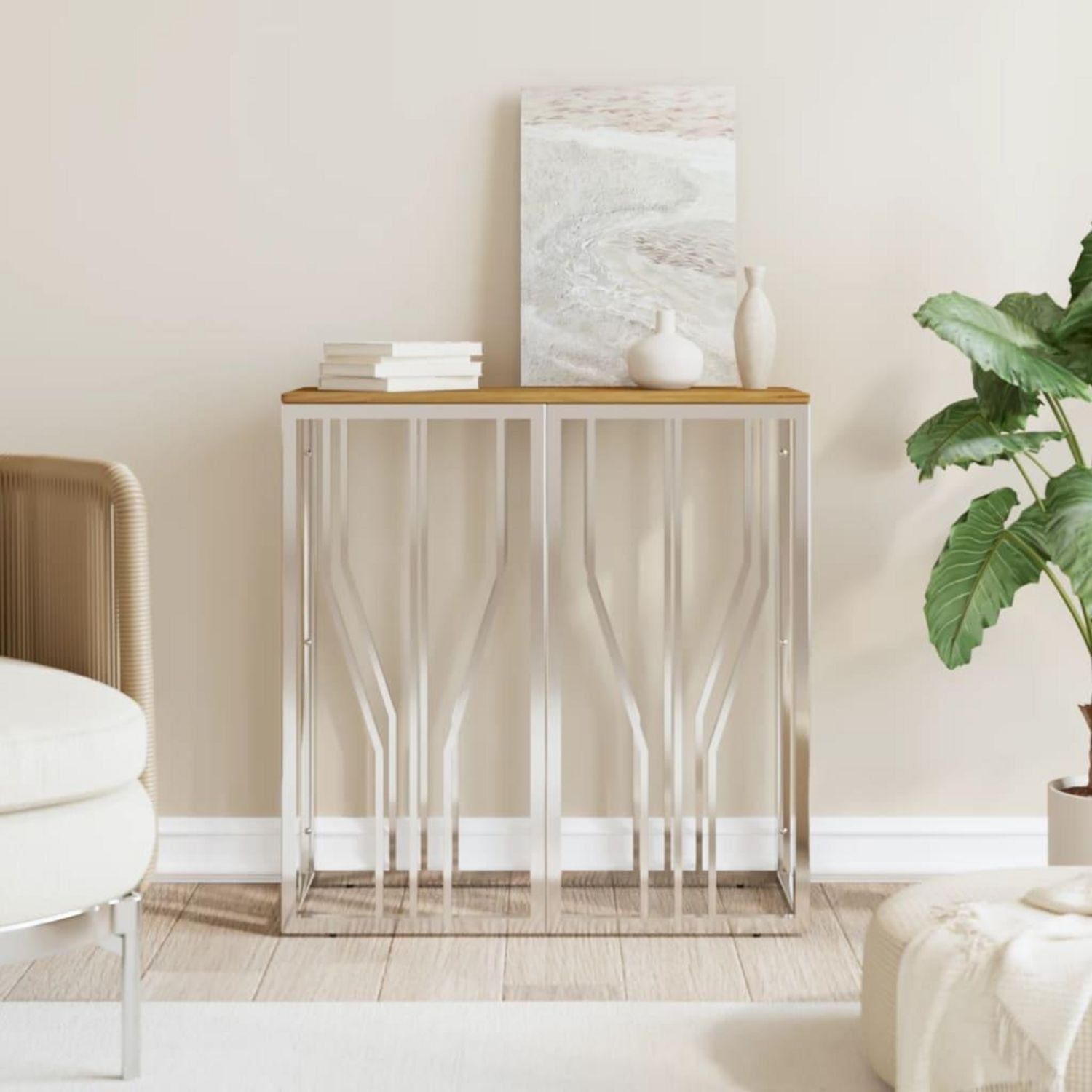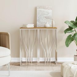 Alliant fonctionnalite et beaute, cette table console sera le point central de votre piece. Cadre robuste et stable : ce bout de canape a un cadre en acier inoxydable qui est robuste, stable et resistant a la corrosion et a la rouille.Bois d'acacia massif : le bois d'acacia massif est un materiau na