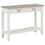 La table a un dessus de table en MDF solide sur lequel vous pouvez placer des objets decoratifs tels que des corbeilles a fruits ou des vases. Les pieds en bois de pin solide garantissent la stabilite et la durabilite, assurant des annees de service. De plus, les 2 tiroirs offrent un espace suffisant pour garder toutes sortes d'objets plus petits organises et a portee de main. L'etagere offre un espace supplementaire pour ranger vos chaussures et autres effets personnels.