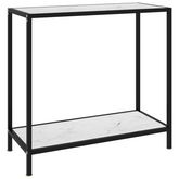 Cette table console est parfaite pour apporter une apparence simpliste mais elegante a votre espace de vie. Cette table d'appoint est fabriquee en verre trempe et en acier enduit de poudre, ce qui la rend extremement solide et stable. La table d'appoint est facile a nettoyer avec un chiffon humide.