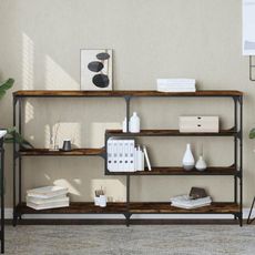 La table console chêne fumé de VIDAXL, référence 833957, est un élément de décoration intérieure élégant et fonctionnel. Avec ses dimensions de 160 x 32 x 95 cm, elle offre suffisamment d'espace pour exposer vos objets décoratifs ou pour servir de surface de travail. Le bois d'ingénierie utilisé garantit une surface lisse et une grande résistance, tandis que le chêne fumé lui confère un aspect raffiné et moderne.