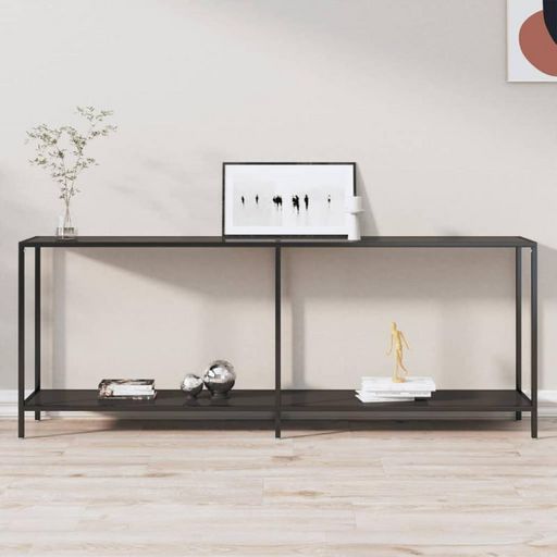 Cette table console VidaXL allie esthétique contemporaine et fonctionnalité. Son cadre noir sobre et ses étagères en verre trempé transparent apportent une touche épurée à votre intérieur, idéale pour les espaces urbains ou les décors minimalistes.