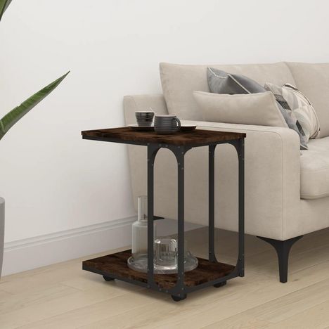 Table d'appoint a roues Chene fume 50x35x55,5 cm