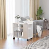 Cette table d'appoint blanc brillant 70x35x55 cm allie esthétique moderne et praticité. Son plateau en bois d'ingénierie offre une surface lisse et résistante, idéale pour accueillir vos objets décoratifs, livres ou boissons tout en s'intégrant harmonieusement dans votre salon.