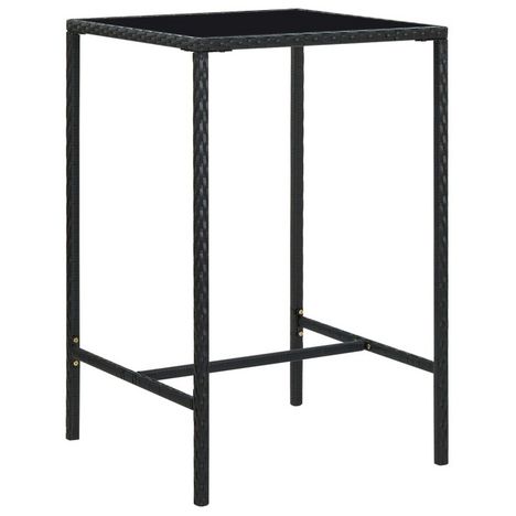 Table de bar de jardin Noir 70x70x110cm Resine tressee et verre