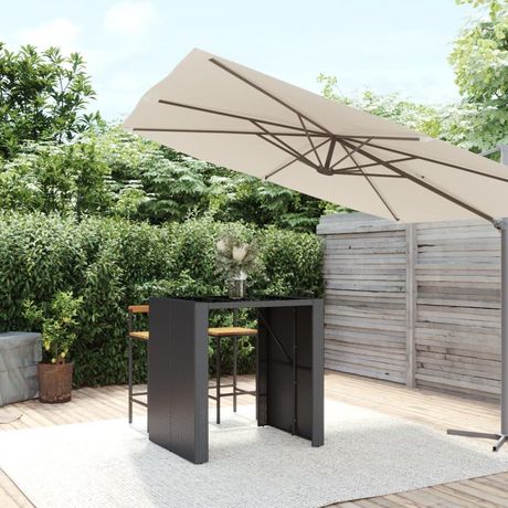 Table de bar et dessus en verre noir 105x80x110 cm poly rotin