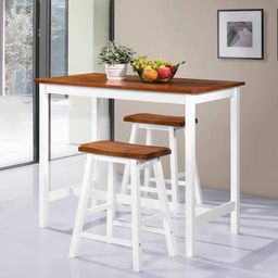 Cet ensemble de bar se compose d'1 table et de 2 tabourets et constituera un supplement pratique et decoratif a toute maison, bar ou restaurant. Cette table de bar est dotee d'un dessus de table en MDF et de pieds en bois massif. Les tabourets sont entierement faits de bois solide pour la robustesse