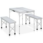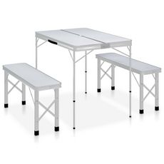 Table de camping pliable avec 2 bancs Aluminium Blanc