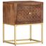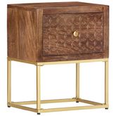 La table de chevet, avec des parties sculptees a la main a l'avant, est faite a la main en bois de manguier massif qui est un bois dur dense et robuste avec des belles stries et des contours bruns ou dores sur sa surface. Chaque etape du processus est realisee avec le plus grand soin, qu'il s'agisse de polissage ou de laquage, et le savoir-faire ajoute au style retro spectaculaire. Les beaux grains de bois rendent chaque meuble unique et legerement different l'un de l'autre. Le cadre en acier enduit de poudre ajoute au style industriel de l'armoire en bois. En outre, cette armoire comprend 1 tiroir, offrant suffisamment d'espace pour garder toutes sortes de petits objets organises et a portee de main. L'article est facile a assembler.