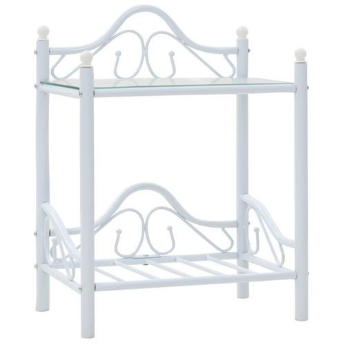 Table de chevet Acier et verre trempe 45 x 30,5 x 60 cm Blanc