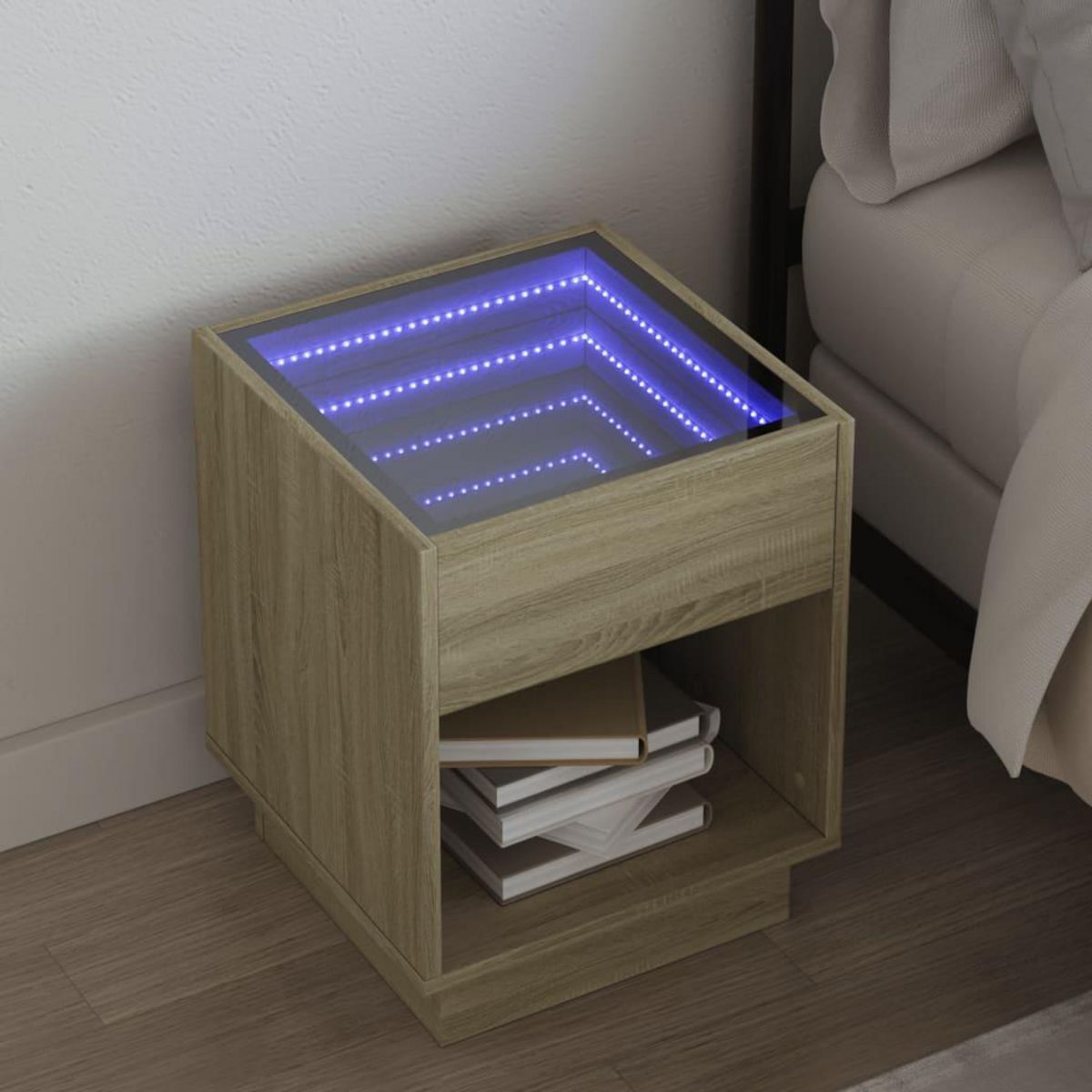 Table de chevet avec LED infini chene sonoma 40x40x50 cm