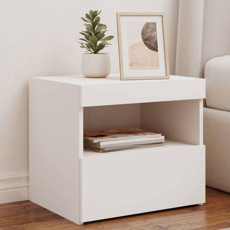 Table de chevet avec lumieres LED blanc 50x40x45 cm