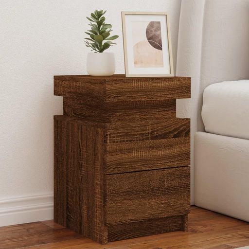 Table de chevet avec lumieres LED chene marron 35x39x55 cm
