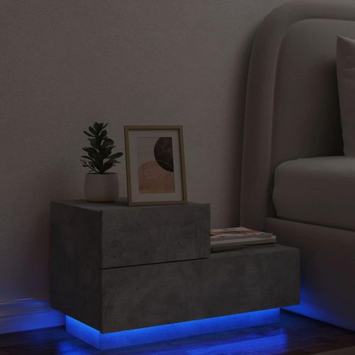 Table de chevet avec lumieres LED gris beton 70x36x40,5 cm