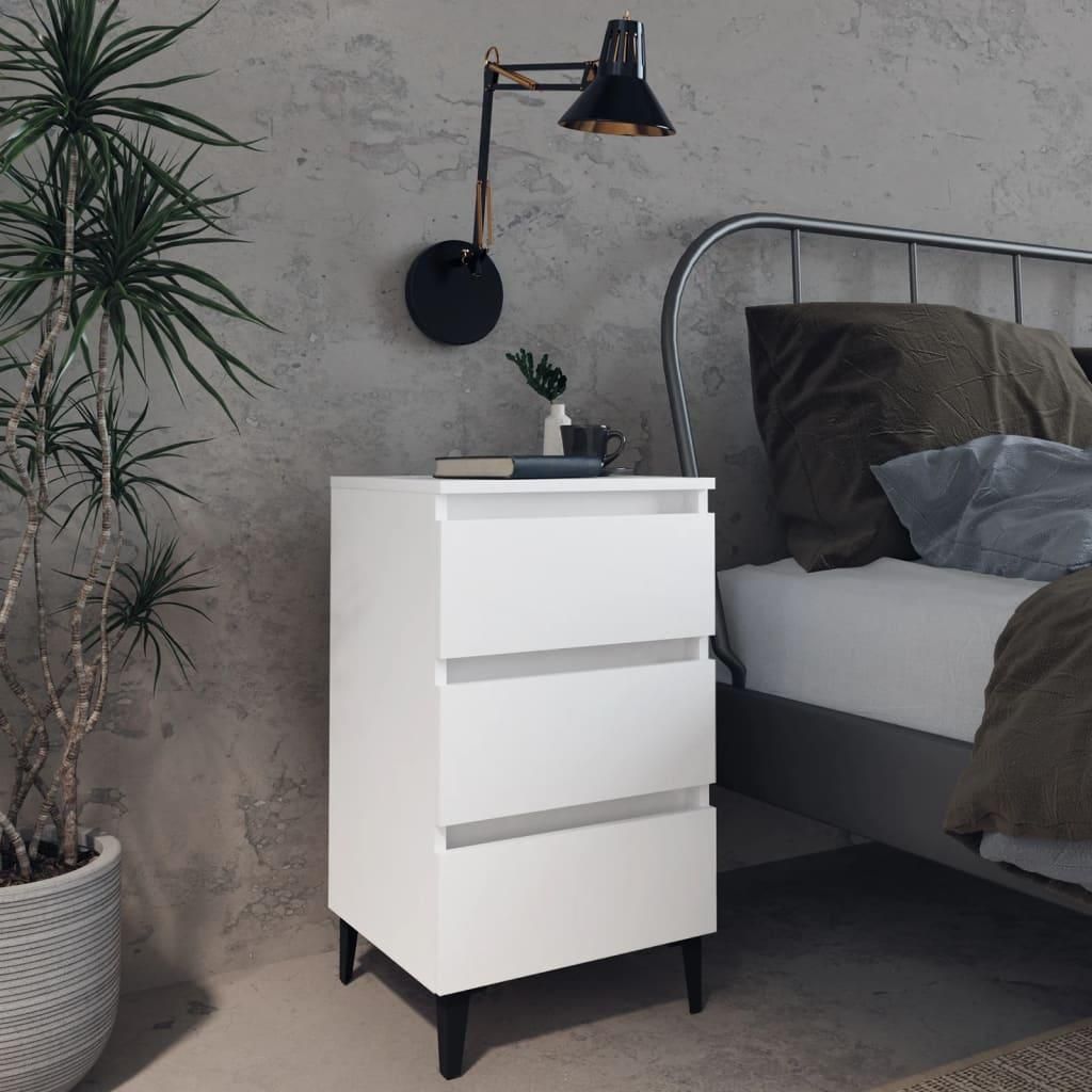 Table de chevet avec pieds en metal blanc 40x35x69 cm