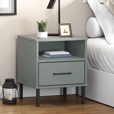 Table de chevet avec pieds en metal Gris Bois pin massif OSLO