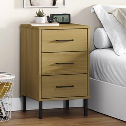 Table de chevet avec pieds en metal Marron Bois pin massif OSLO