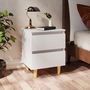 Cette table de chevet a deux tiroirs presente une touche scandinave. Avec un design simple mais pratique, elle est parfaite pour la decoration de votre maison.
