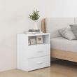 Apportez un style moderne a votre interieur avec cette table de chevet. Cette table de chevet est stable et robuste. De plus, la table de chevet est equipee de deux tiroirs et d'une etagere, offrant un espace de rangement suffisant pour garder vos essentiels bien organises et a portee de main. Elle