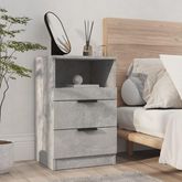 Le bois d'ingénierie utilisé pour cette table de chevet est un matériau de haute qualité, résistant aux chocs et aux rayures. La finition gris béton est non seulement esthétique mais également facile à nettoyer et à entretenir. Cela en fait un choix idéal pour ceux qui cherchent un mobilier durable et low maintenance.