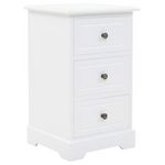 La table de nuit est en MDF et decoree de poignees metalliques sur les tiroirs. Conçue avec 3 tiroirs, elle offre un grand espace de rangement pour garder les petits objets bien ranges et a portee de main. Vous pouvez egalement placer votre reveil, un verre d'eau rafraîchissant ou des objets decoratifs comme des cadres photo sur la surface superieure du meuble.