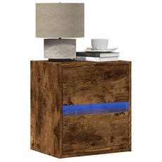 Table de chevet murale avec lumieres LED chene fume