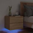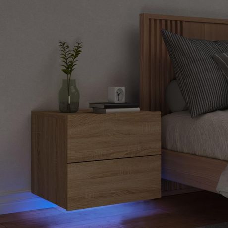 Table de chevet murale avec lumieres LED chene sonoma