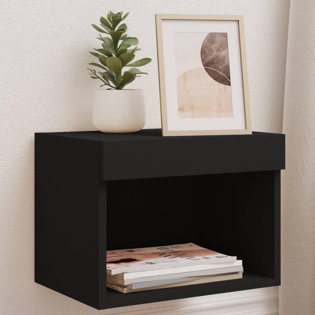 Table de chevet murale avec lumieres LED noir