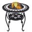 Fabrique en acier, le bol de foyer est excellent pour l'absorption et la radiation de la chaleur. Il peut etre utilise pour bruler du bois sec, des buches ou du charbon de bois. Le foyer est supporte par un support a quatre pattes. Le grillage de securite inclus vous permet de surveiller le feu qui brule, et entoure le feu pour la securite ainsi que pour empecher les etincelles et les debris de s'envoler. L'outil de tisonnier peut etre utilise pour retirer le couvercle du grillage et pour rearranger les buches ou le charbon. De plus, la table de foyer peut egalement etre utilisee comme barbecue. Sa surface ronde en ceramique offre un endroit parfait pour les boissons et les grillades. Veuillez noter que ce produit ne convient pas pour etre laisse a l'exterieur dans des conditions froides.