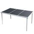 Cette table a manger, conçue avec des lignes epurees et simples, est un excellent choix pour votre jardin, votre terrasse et pour tout autre espace exterieur. Son elegance simple rendra le dîner quotidien special. Cette table a manger avec dessus en verre dispose de pieds en acier enduit de poudre,