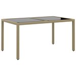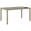Table de jardin 150x90x75 cm Verre trempe/resine tressee Beige