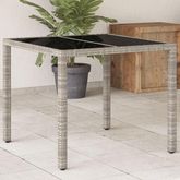 Table de jardin avec dessus en verre gris clair resine tressee