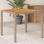 Table de jardin beige 90x90x75 cm resine tressee et bois acacia