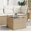 Table de jardin dessus en verre beige 55x55x37cm resine tressee