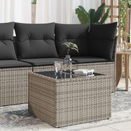 Table de jardin dessus en verre gris 55x55x37 cm resine tressee