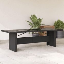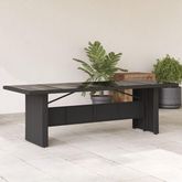 Table de jardin dessus en verre noir 240x90x75cm resine tressee