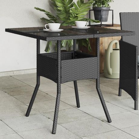 Table de jardin dessus en verre noir 80x80x75 cm resine tressee