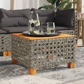 Table de jardin gris 55x55x36 cm resine tressee et bois acacia