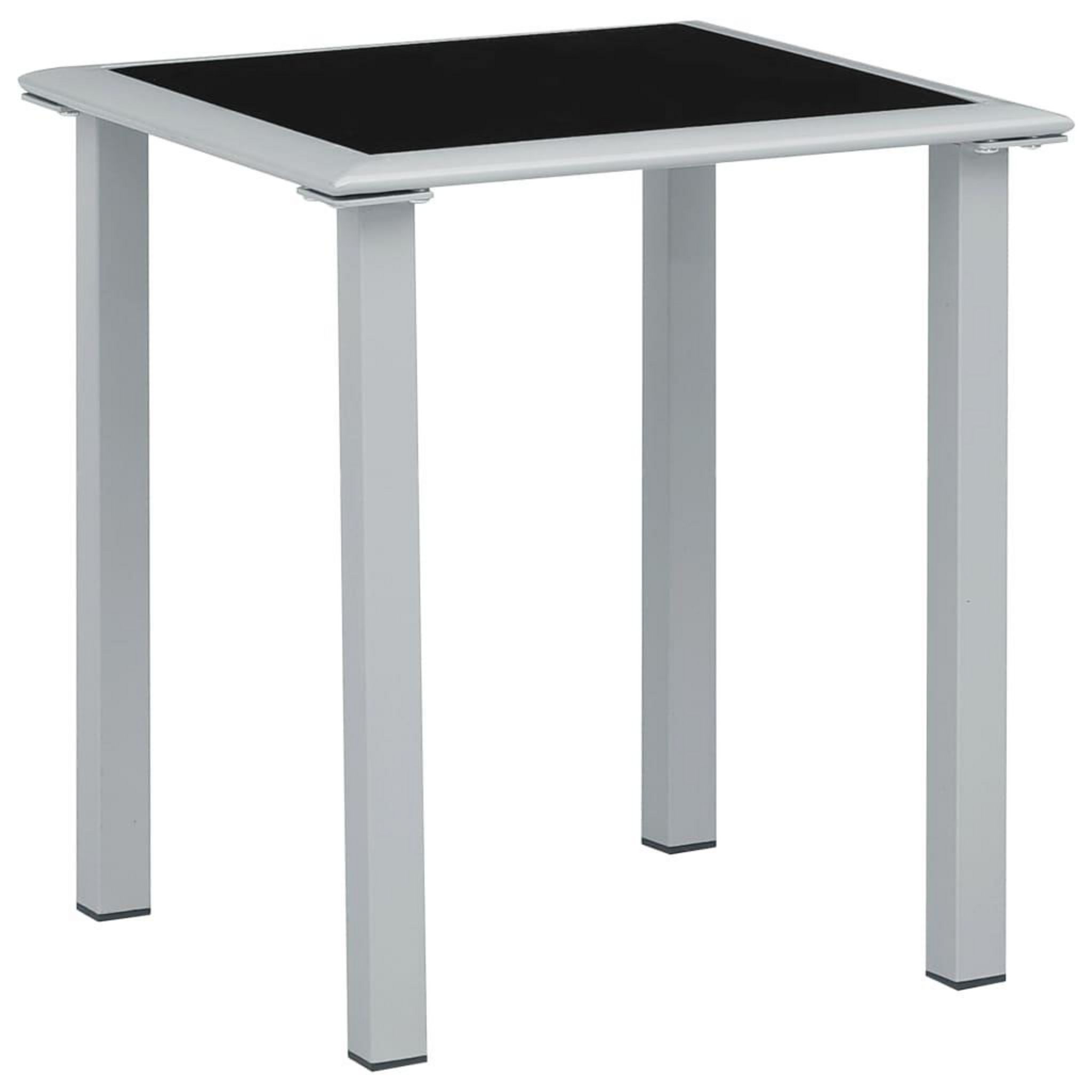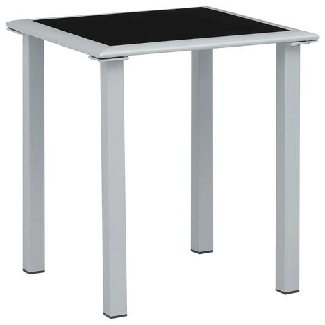 Table de jardin Noir et argente 41x41x45 cm Acier et verre