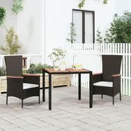 Table de jardin plateau en bois Noir Resine tressee bois massif