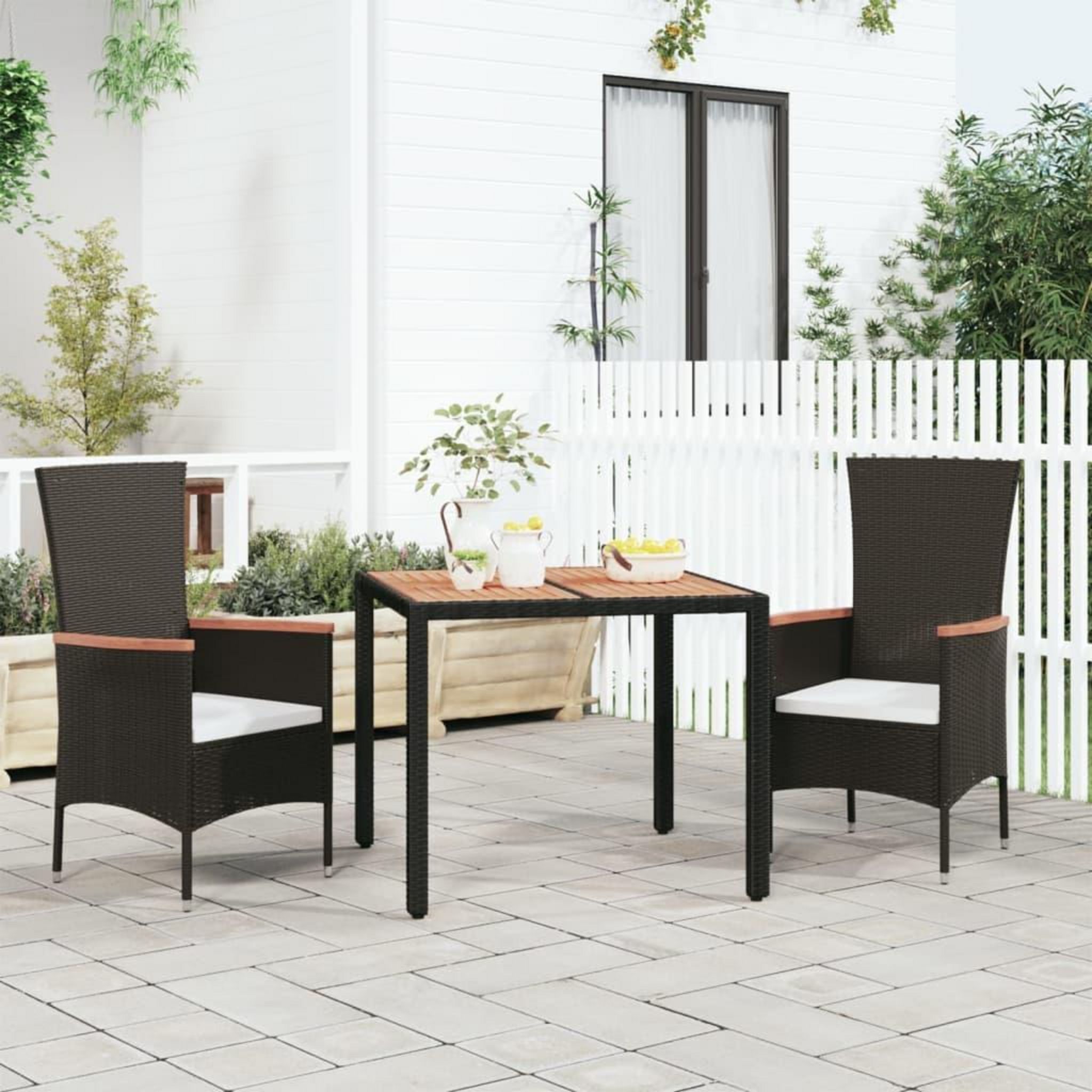 Cette table de jardin avec dessus en bois, conçue avec des lignes epurees et simples, est un excellent choix pour votre jardin, terrasse et tout autre espace exterieur. Materiau durable : la resine tressee, egalement connue sous le nom de rotin poly, resiste aux intemperies et est facile a nettoyer.