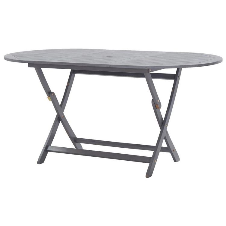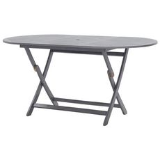 La table a manger d'exterieur est fabriquee en bois d'acacia massif, un bois dur tropical, qui resiste aux intemperies et est tres durable. Elle presente un trou pour tenir un parasol fermement au milieu. La table d'exterieur peut etre repliee pour economiser de l'espace lorsqu'elle n'est pas utilisee. La table a manger doit etre assemblee.