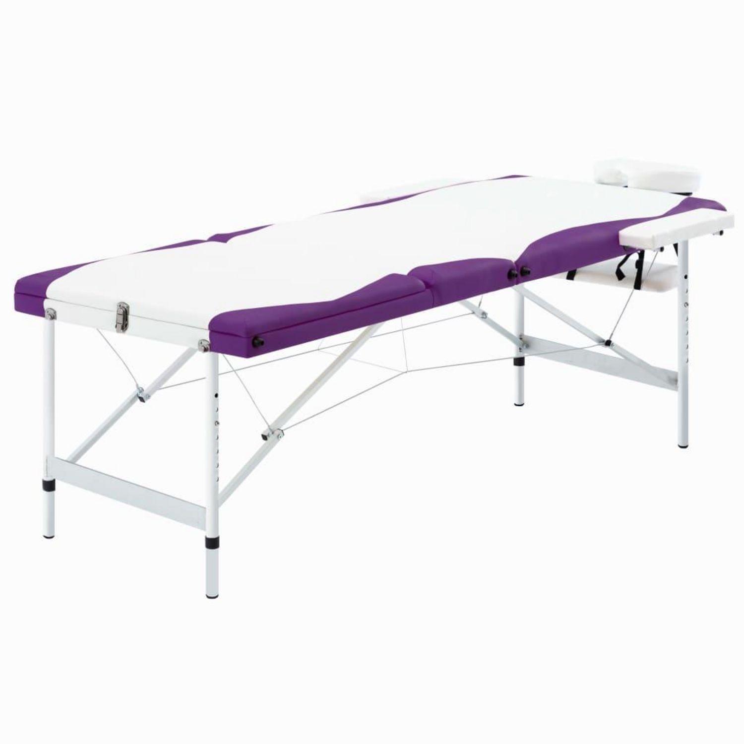 Table de massage pliable 3 zones Aluminium Blanc et violet