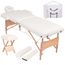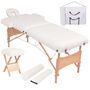 Cet ensemble se compose d'une table de massage pliable a 2 zones, d'un tabouret de massage, d'un traversin rond et d'un traversin demi-rond, ideal pour un usage professionnel ou prive.