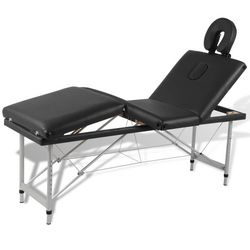Table de massage pliable Noir 4 zones avec cadre en aluminium