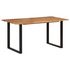 Cette table de salle a manger est en bois d'acacia massif, un bois dur tropical repute pour sa robustesse et ses grains riches. La forme vive et les bords du dessus de table sont deliberement transformes, pour que le caractere original et l'impression naturelle de l'arbre soient apportes a votre decoration interieure ! Chaque etape du processus est realisee avec le plus grand soin, que ce soit le polissage, la peinture ou le laquage. Les pieds en acier completent l'aspect industriel et contribuent a la construction robuste.