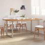 Cette table de salle a manger est en bois d'acacia massif, un bois dur tropical repute pour sa robustesse et ses grains riches. La forme vive et les bords du dessus de table sont deliberement transformes, pour que le caractere original et l'impression naturelle de l'arbre soient apportes a votre decoration interieure ! Chaque etape du processus est realisee avec le plus grand soin, que ce soit le polissage, la peinture ou le laquage. Les pieds en acier completent l'aspect industriel et contribuent a la construction robuste.