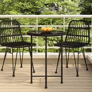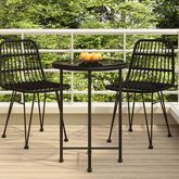 - Materiau : acier, verre trempe, polyethylene avec un aspect de rotin