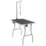 Il dispose d'un plateau antiderapant et d'un cadre en fer enduit de peinture en poudre avec un bras de toilettage reglable et un nœud coulant.