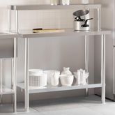 Cette table de travail de cuisine est parfaite pour la preparation et le stockage des aliments et est ideale pour une cuisine de bar, un restaurant, une ecole, ainsi que d'autres lieux commerciaux.